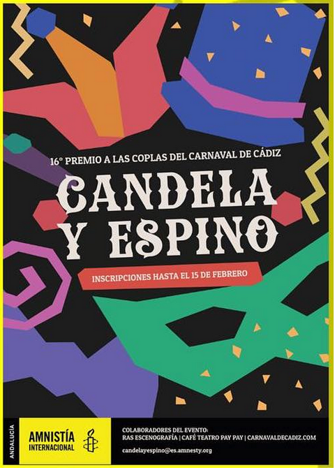 En Amnistía Internacional Andalucía entendemos que con la convocatoria del 16º Premio Candela y Espino de Coplas del Carnaval de Cádiz por los Derechos Humanos contribuimos a la sensibilización social, como hacen otras entidades de defensa de los derechos de las personas.