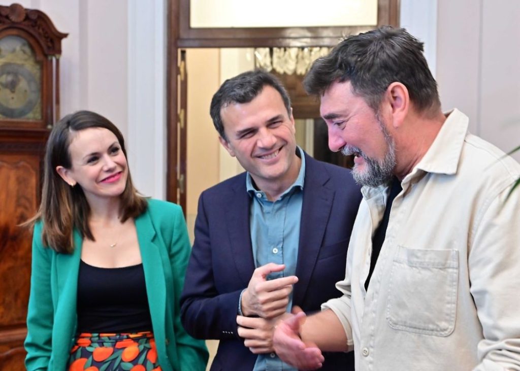 El alcalde de Cádiz, Bruno García, acompañado por la concejala de Fiestas y Carnaval del Ayuntamiento de Cádiz, Beatriz Gandullo, ha recibido oficialmente al pregonero del Carnaval de Cádiz 2024, Juan Manuel Braza Benítez ‘El Sheriff’. El regidor ha mantenido el primer encuentro con el chirigotero para intercambiar las primeras impresiones sobre un pregón cuyos preparativos han comenzado hoy mismo, con una reunión técnica con los responsables de la Delegación Municipal de Fiestas del Ayuntamiento de Cádiz.