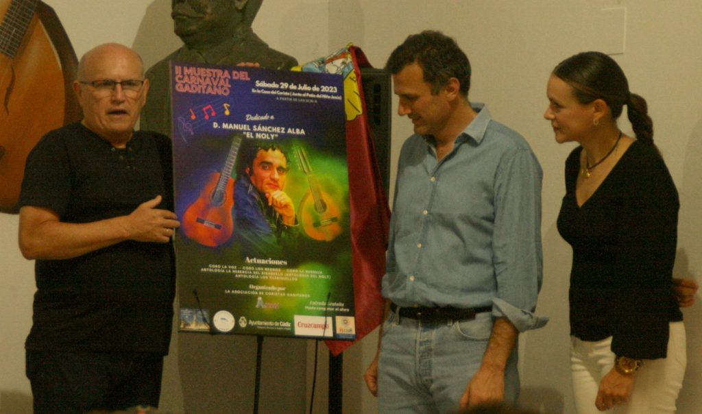 El cartel lo ha realizado Jaime Fernández de la Puente, que lo desveló en el acto junto al alcalde y Manuel Sánchez Alba ‘Noly’, al que se dedica la Muestra de este año.
